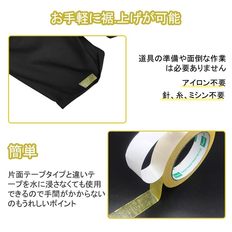 • (Washable Double Sided Tape) The hem raises have strong adhesion and is resistant to water, so it can be washed as well. It can be torn by hand, so you can work without scissors, cutters, etc., making it safe for children and the elderly