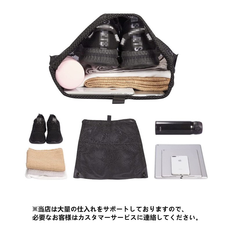 Samcos Mesh Bag, Gym Bag, Gymsack, Rucksack, Knapsack, Lightweight, Shoe Storage, Camping, Travel, Exercise, Swimming, Hot Spring Bag, Multi-functional, Black