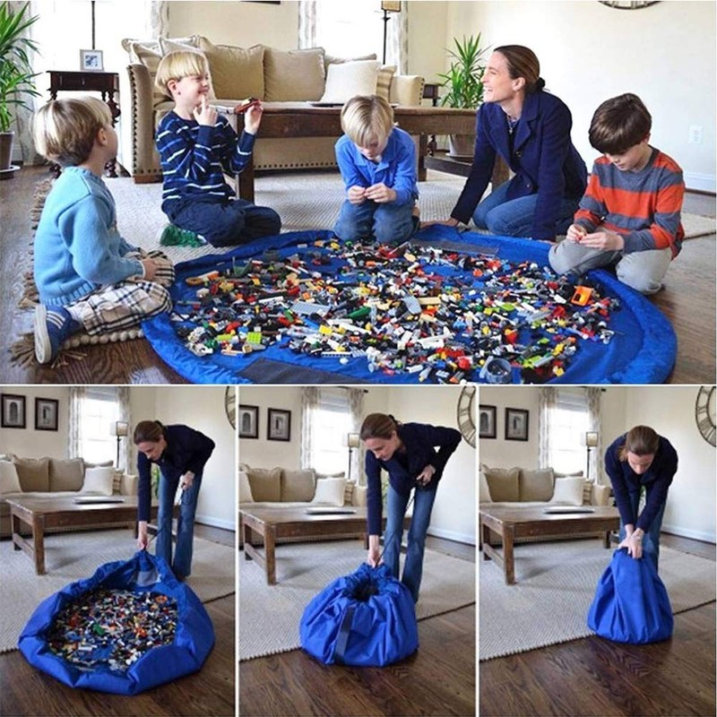 - Easy to clean: This storage bag looks like a seat. After playing on it, just squeeze the string and put it away after play. Much easier than a toy box. In particular, the toy blocks and other small parts make it comfortable to clean up
