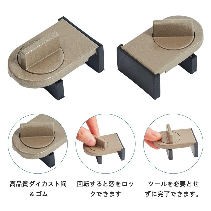 Samcos Window Lock, Sash Stopper, Burglar Prevention Auxiliary Lock, Die-Cast Steel + Rubber, Simple Installation, Strong Hold, Windproof, Security Goods, Door Lock, Wind Lock, Security Measures, Sliding Door, Wind Lock, Window Auxiliary Lock, Sash Windo