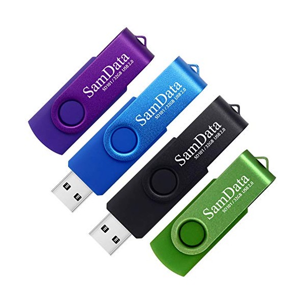 - [Great Value Package Offer]: 4 Pack USB 2.0 Flash Drive 32GB Available in 4 different colors - Black Blue Green And Purple. The different colors can help you to store different content.