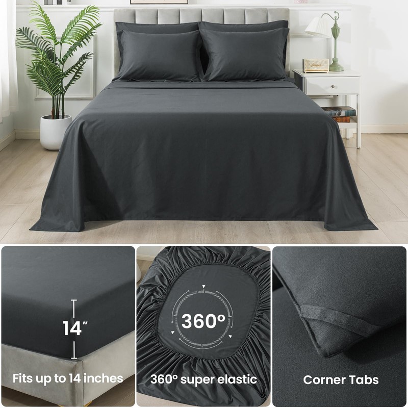 - Thoughtful Design Details: The fitted sheet has a 14-inch deep pocket and high-elasticity edge technology that wraps around the entire mattress to ensure stability. Diamond quilting and rectangular quilting are combined, the filling is better fixed by high-density needle and thread sewing, and it will not be easily displaced even after machine washing. Bedding includes Pillow Sham and Pillowcase for an elegant bedroom pillow decor
