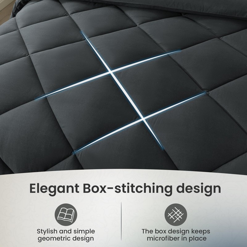 SameBed King Size Comforter Set, 7 Pieces Bed in a Bag, Bedding Sets with All Season Soft Quilted Lightweight Comforter, Flat Sheet, Fitted Sheet, 2 Pillow Shams, 2 Pillowcases, Dark Grey