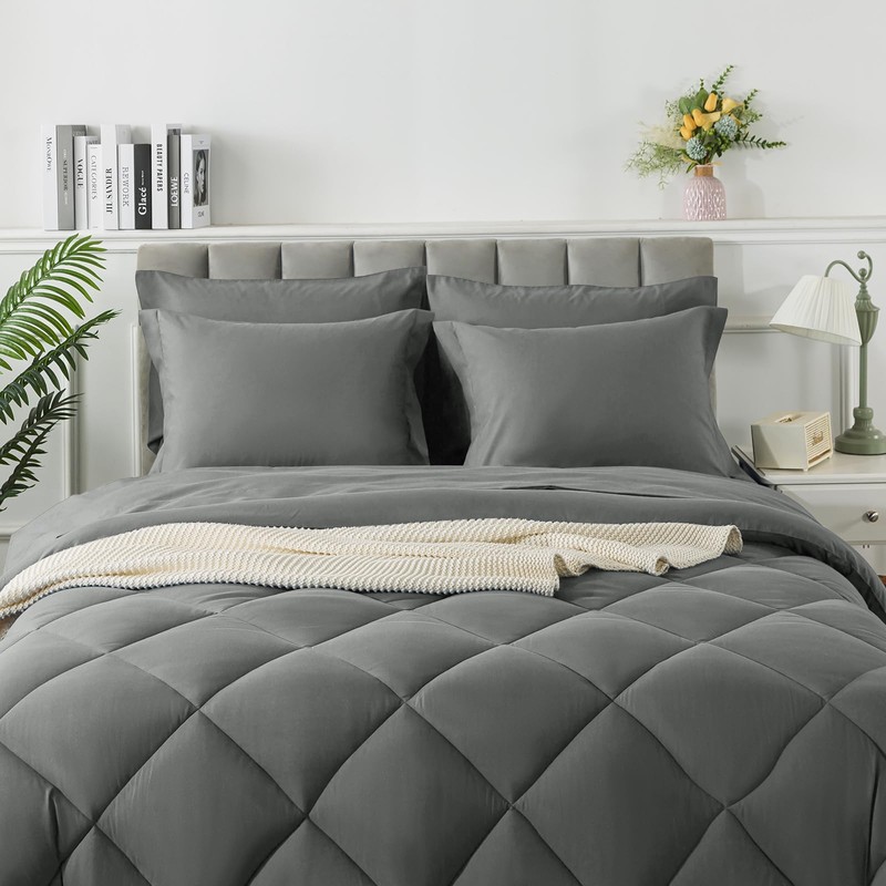 - Complete Bedding Set: The set includes 1 comforter (88"x88"), 2 pillow shams (20"x26"), 1 fitted sheet (60"x80"), 1 flat sheet (90"x102"), and 2 pillowcases (20"x30"). All the bedding you need is packed in one bag, making it easy to turn a bare mattress into a comfortable sleeping space