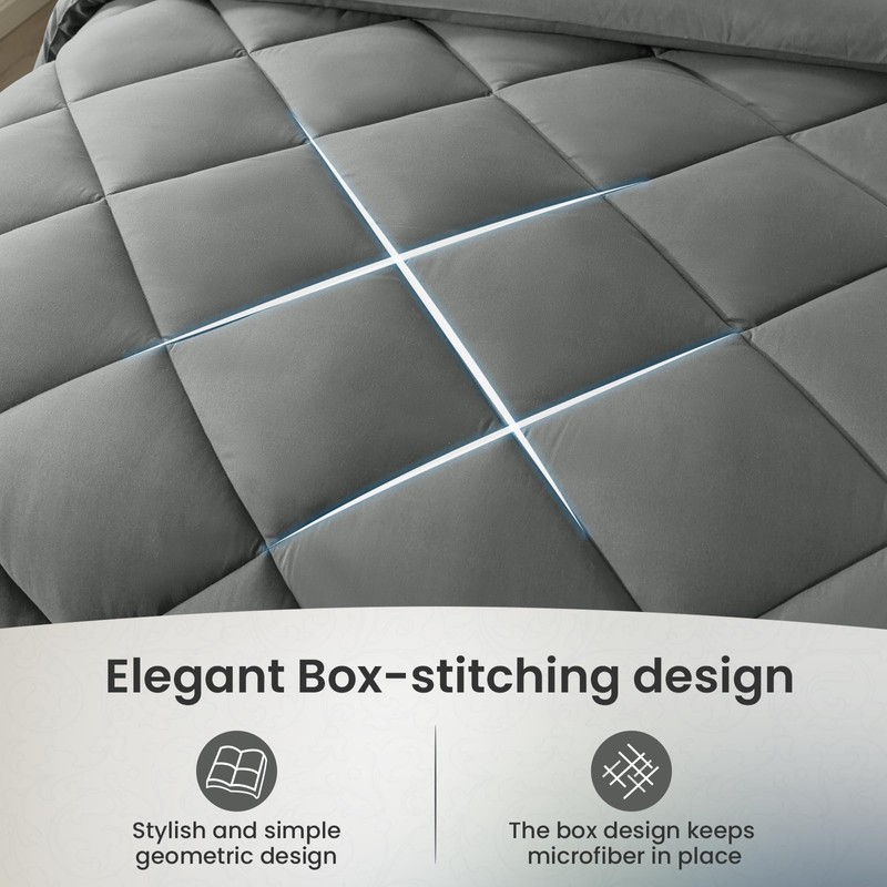 - High-Quality Filling: The comforter is filled with a combination of 3D and 7D hollow polyester fibers that maintain the balance between weight and warmth while keeping the comforter fluffy. The product is vacuum-packed, so it is recommended to pat the quilt with your hands to make it more fluffy after unpacking