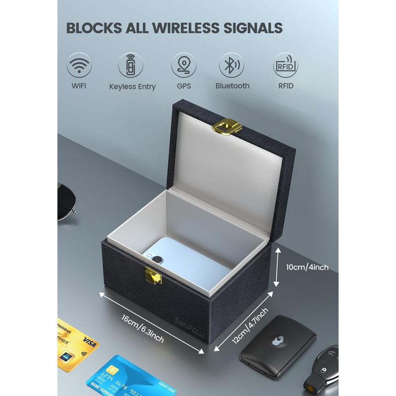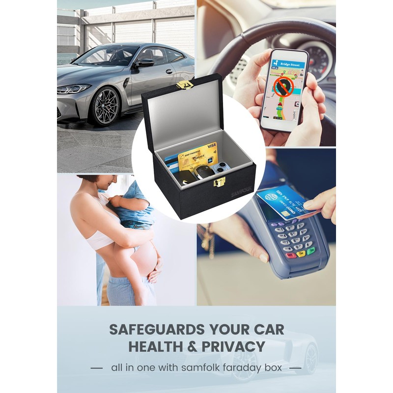 - Essential Protection for Your Keyless Car: Keep your keyless car and car alarm system secure with the Samfolk Faraday box set. The combination of a signal-blocking box and pouches effectively safeguards your car's security system, preventing hackers from accessing your keyless entry car keys.