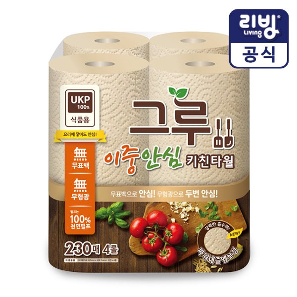 Samjeong Pulp [Samjeong Pulp] Groo unbleached kitchen towels 230 sheets, 4 rolls/food grade, Groo kitchen towels 230 sheets, 4 rolls / 삼정펄프 [삼정펄프] 그루 무표백 키친타월 230매 4롤/식품용, 그루 키친타월 230매 4롤