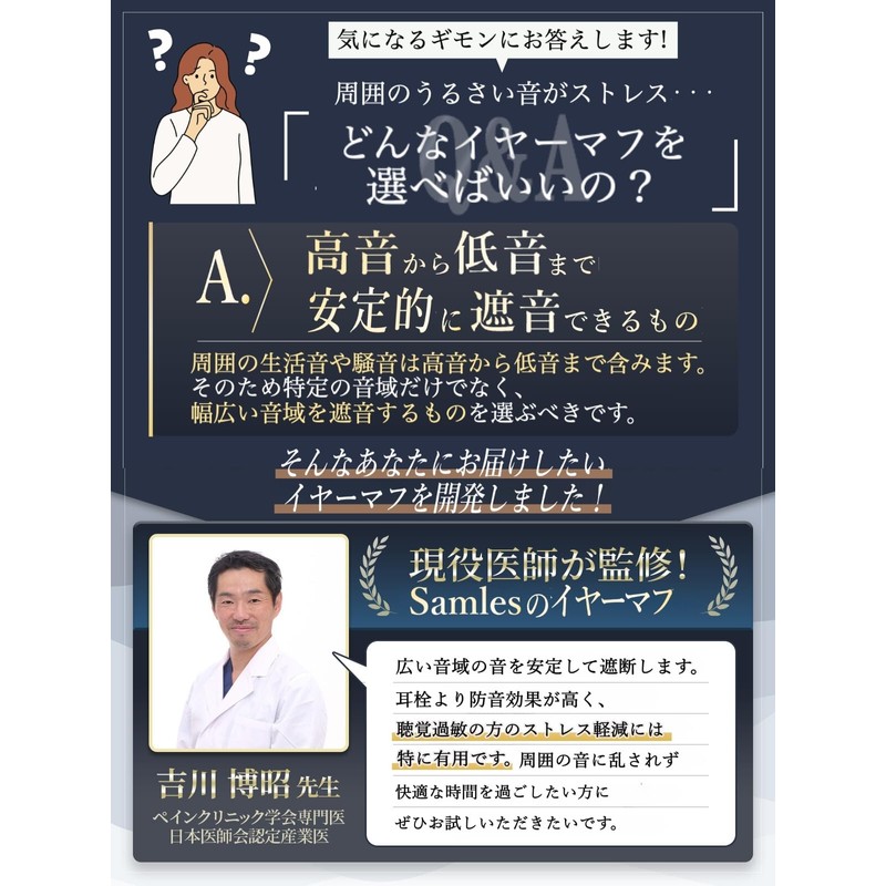 [Samles] 【現役医師監修】 イヤーマフ 防音 聴覚過敏 大人 子供 耳栓付き 『 高音から低音まで安定した遮音性 』 ヘッドホン 騒音対策