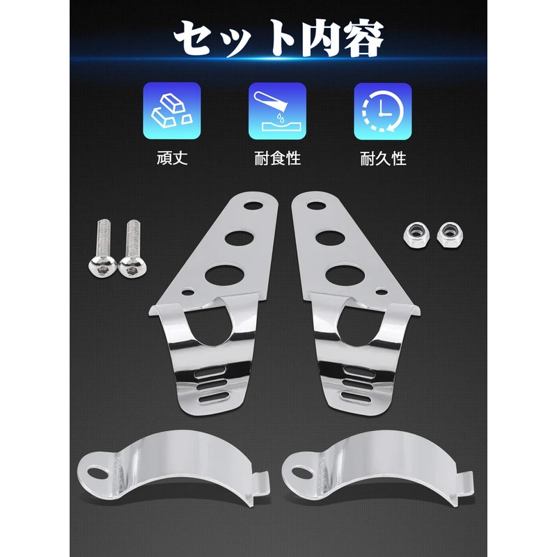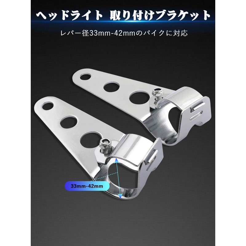 - (Applications) Headlight mounting bracket is suitable for Honda, Kawasaki, Suzuki, Yamaha, Triumph, Nonon, BSA, Ducati, Harley Davidson 1.3 - 1.7 inches (33 - 42 mm) front fork bicycles