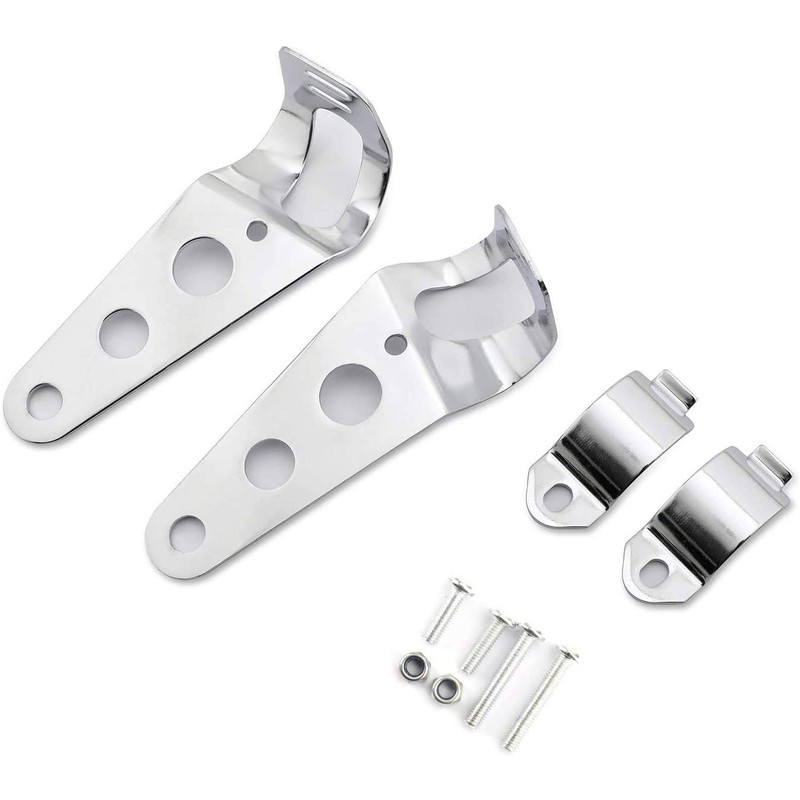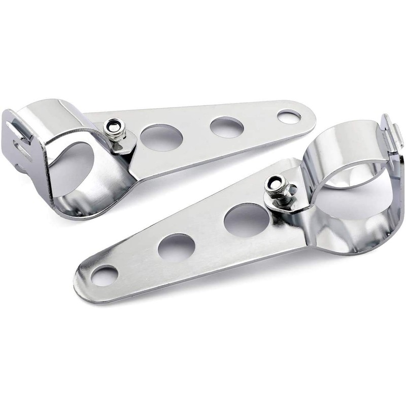 Samman Headlight Mounting Bracket Stays 1.3 - 1.7 inches (33 - 42 mm) Compatible Honda Suzuki Yamaha Motorcycles Universal Front Fork Stays Mount Bracket Silver Stainless Steel Adjustable Left and
