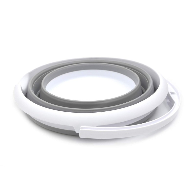 SAMMART 10L Faltbarer Angeleimer - Faltbare runde Wanne - Tragbarer Wassereimer aus Kunststoff - Platzsparender Wassertopf im Freien - Kofferraum-Organizer für alle Fahrzeugtypen (Grau, 1)