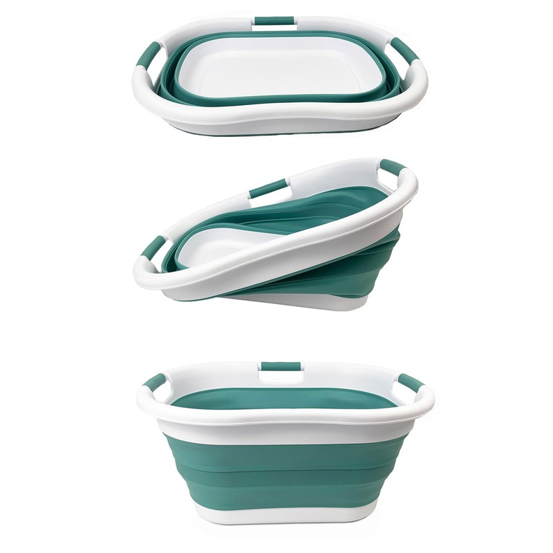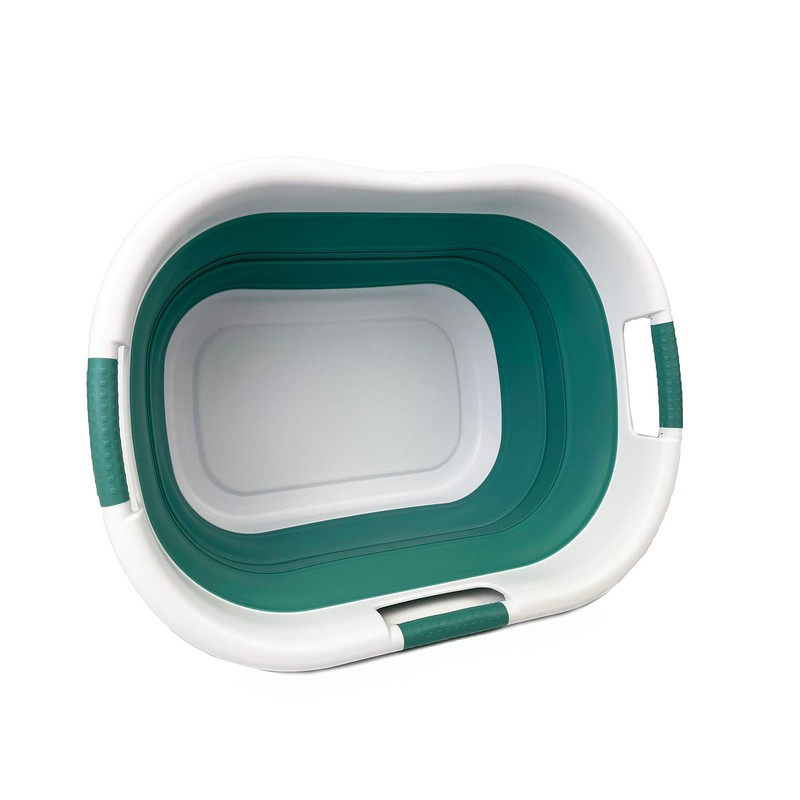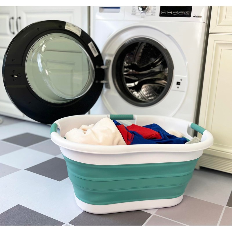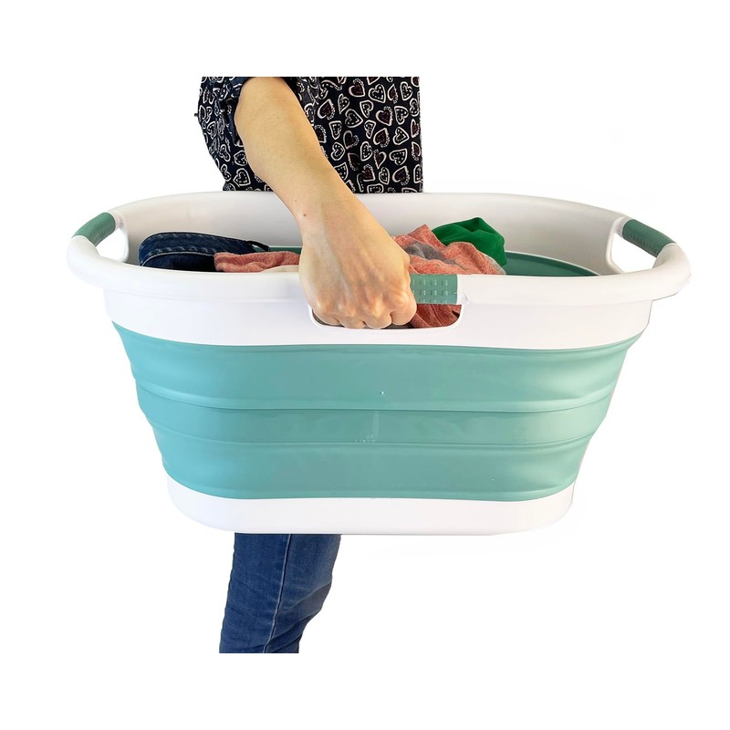 SAMMART 40L (10.5 gallon) Collapsible Plastic Laundry Basket - Foldable Storage Container- Portable Washing Tub - Space Saving Hamper (1, White/Celadon Green)