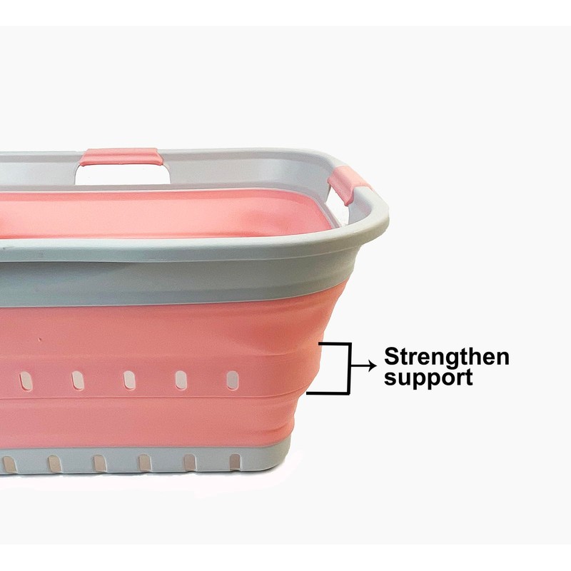 - BPA Free. Comfort grip handles for easy carry. User friendly by simply pop-up to open when using and collapses to flat for space saving