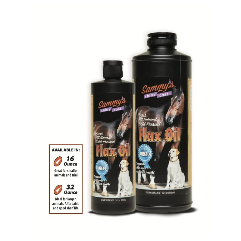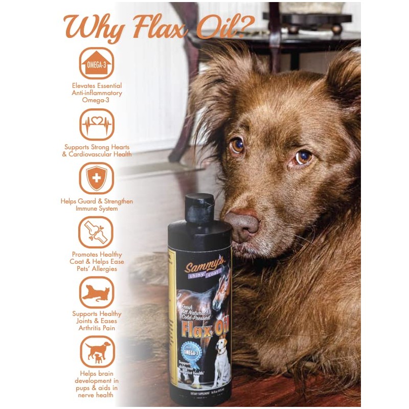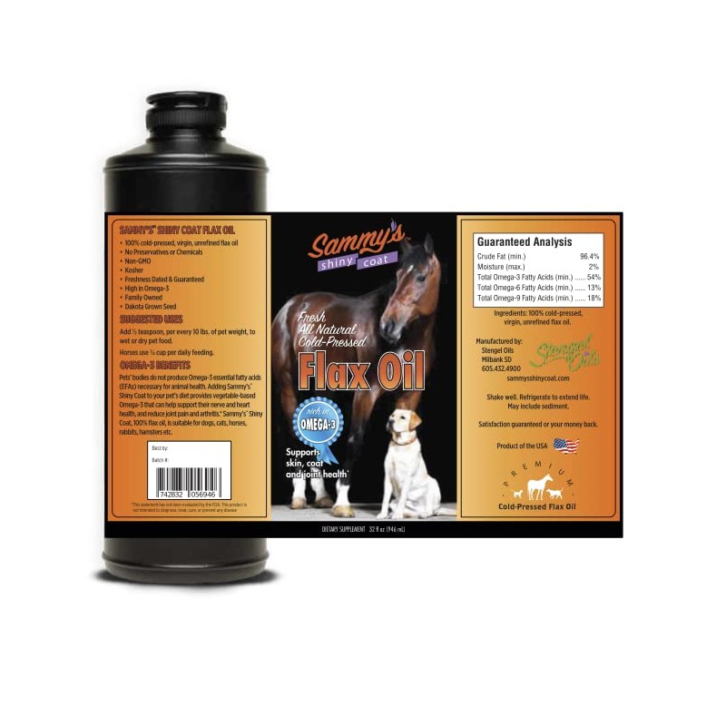 Sammy's Shiny Coat Sammy's? Shiny Coat Flaxseed Oil - 100% Pure, Natural Flax Oil, Cold-Pressed, Excellent Source of Omega-3 for Your Furry Friend, for Healthier Skin and Coat of Your Dogs, Cats, Other Pets - 32 Oz