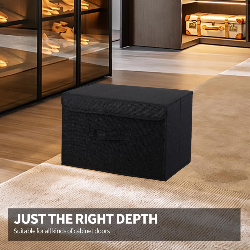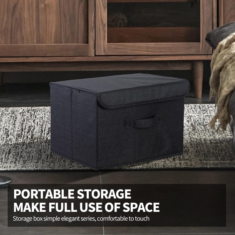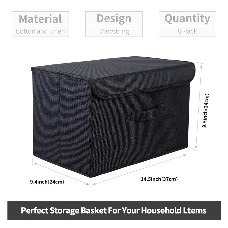 - [Premium Qualit] - This fabric storage bins with lids are made of breathable linen fabric with the high quality cardboard on the sides and bottom, The fabric is eco - friendly, with no odor, The inner 3 mm PP board maintains fabric storage box shape and structural integrity.