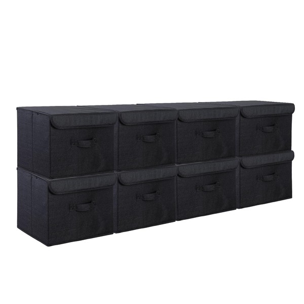 SAMORADREA 8 Pack Large Collapsible Storage Bins Container Fabric Boxs Bulk with Lids Storage Baskets for Shelves Drawers, Desktop, Closet, Office, Bedroom, Home, Garage (Black)