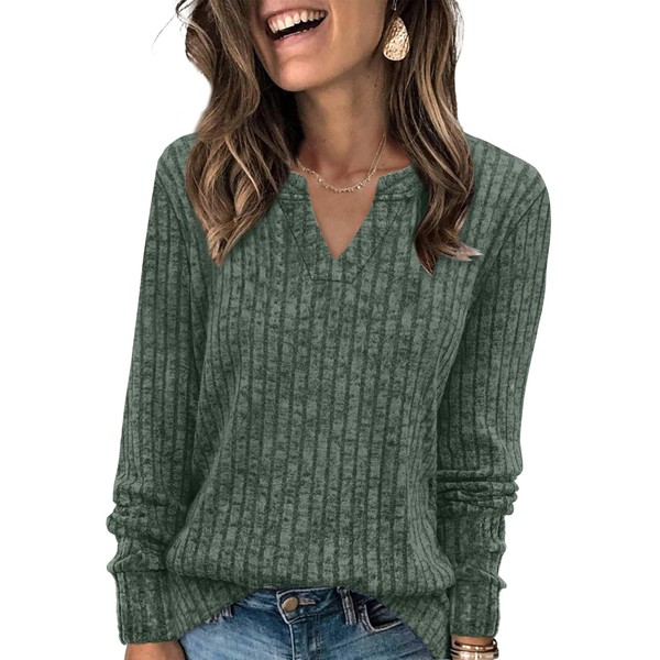 SAMPEEL Sweaters for Women School Teachers Outfits Long Sleeve Shirts Dressy Casual Tops Lightweight Sweatshirt Christmas Fashion Clothing 2025 Green M