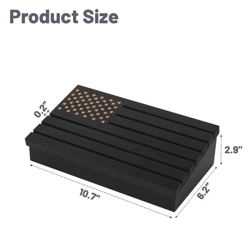 Proudly show off your collection with our Engraved American Flag Challenge Coin Display Box. this is a tabletop display box is 12 x 7.5 x 3.5” and holds approximately 30 standard size challenge coins with space beneath for extra storage. It is a great gift for the collector, veteran or service member in your life.