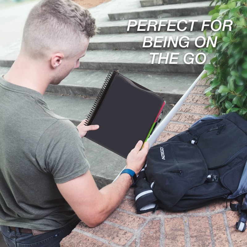 Compared to other competitors on the market having a small spiral spine. Know exactly what is in your folder holder by customizing the front cover. Each document holder has a clear overlay with a non-glare finish on the front cover making your folder easy to customize. Not only can you carry all your papers, but you can also carry extra pens, note cards, stencils, etc. in the attached back pocket. The back pocket is also clear, allowing you to see all the contents inside.