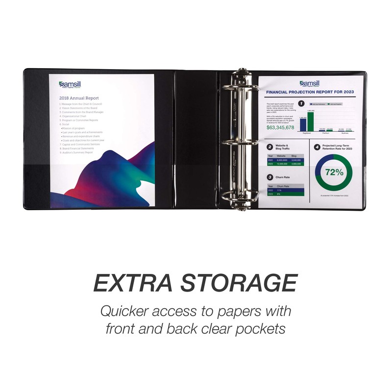 - Professional Look: Designed to impress during presentations and look great on a shelf, our 3-ring binder features back-lid-mounted D-shaped binder rings for a rivetless spine