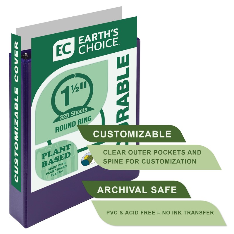 Samsill Plant-Based 1.5 Inch Durable Round Ring, Made in USA, View Binder, Eco-Friendly, USDA Certified Biobased, Single, Violet