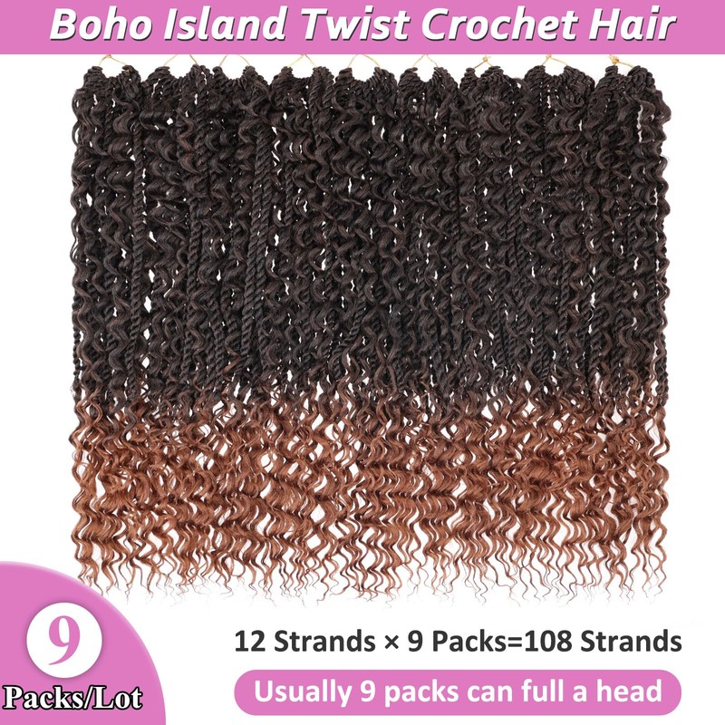- 【Pre-Looped Boho Island Twist Crochet Hair Advantages】: Our Boho Island Twist Crochet Braids is Very fashion And Soft hair, easy to install and save time, good air permeability,no odor, no tangles, skin friendly,atural Hair Texture And beautiful,manageable,Bouncy,Shiny And Full,Blends So Well With Natural Hair,Choose Boho Twist Crochet Hair for a glamorous look.