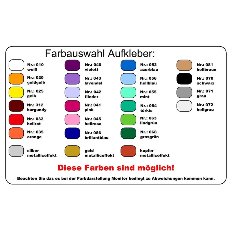 This offer is made from high-quality glossy branded films (Orafol) and are suitable for outdoor use.