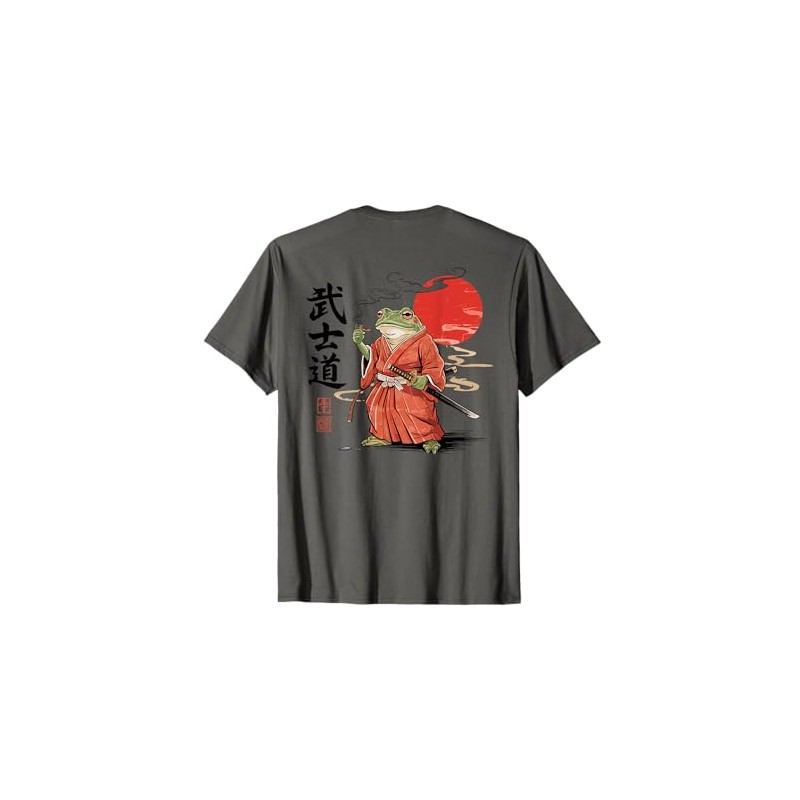 Samurai Frog with Katana and Pipe Japanese (ART BACK) T-Shirt