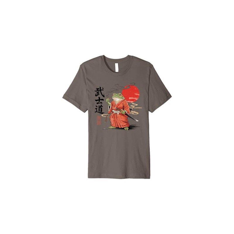 Samurai Frog with Katana and Pipe Japanese Premium T-Shirt