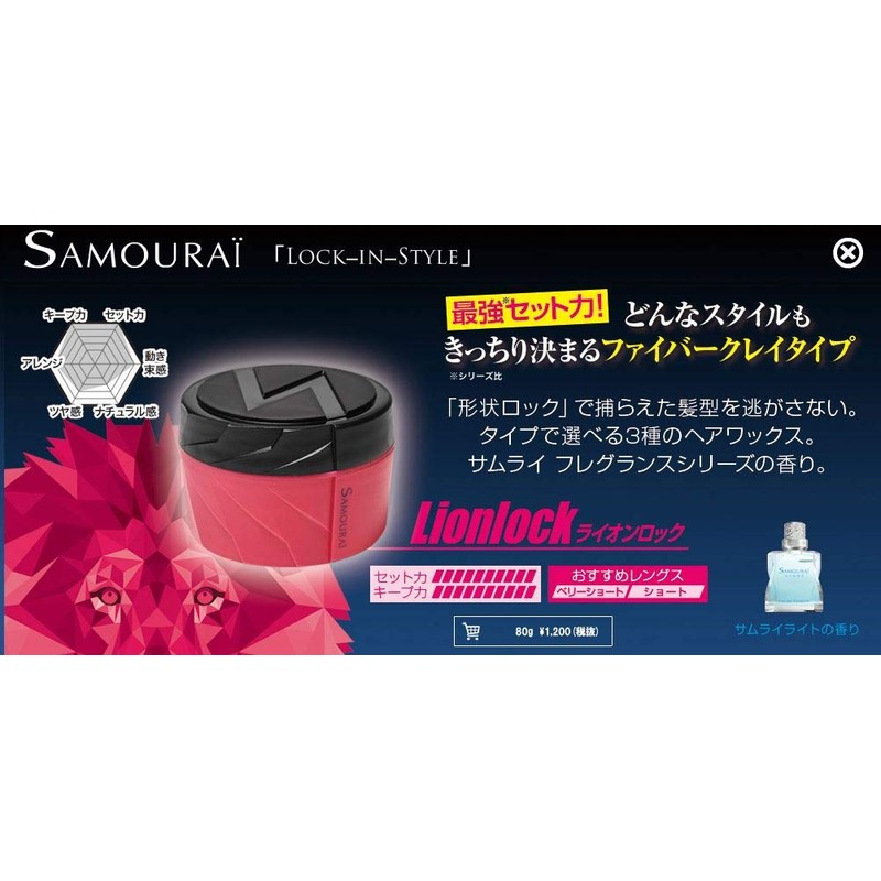 Samurai Lock-in Style Lion Rock Hair Wax, 2.8 oz (80 g) (x 80)