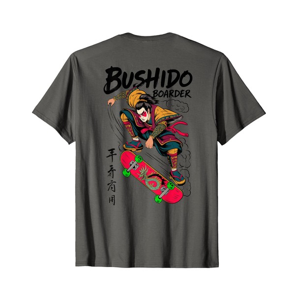 Samurai Skateboarder Bushido Dragon Deck (ART BACK) T-Shirt
