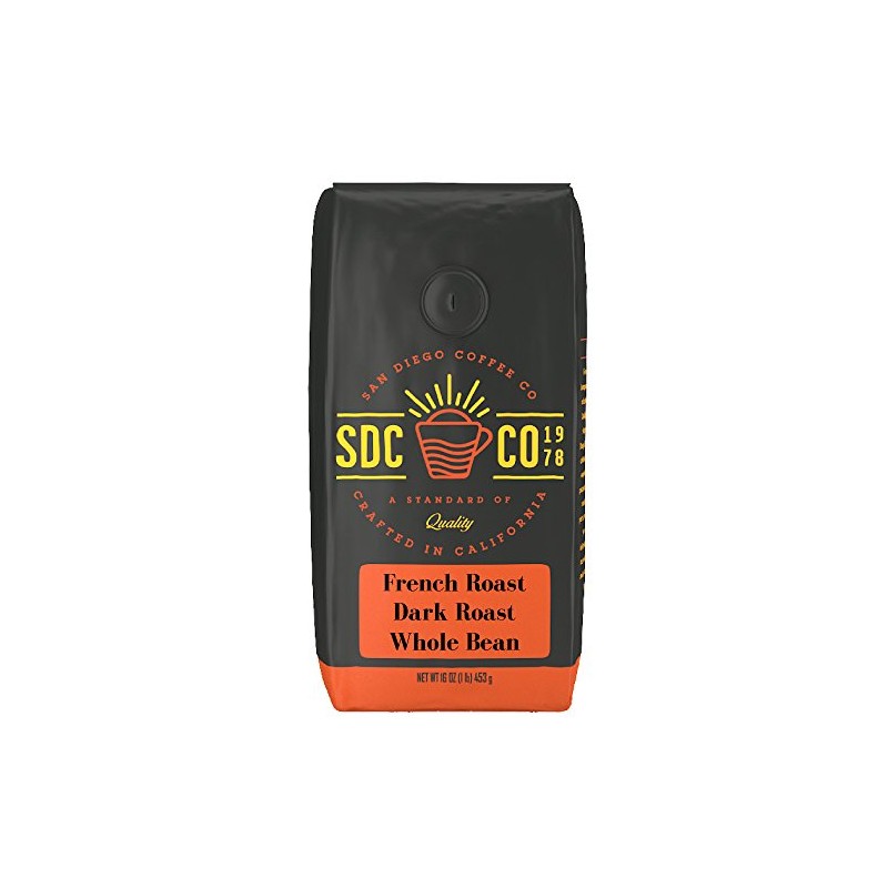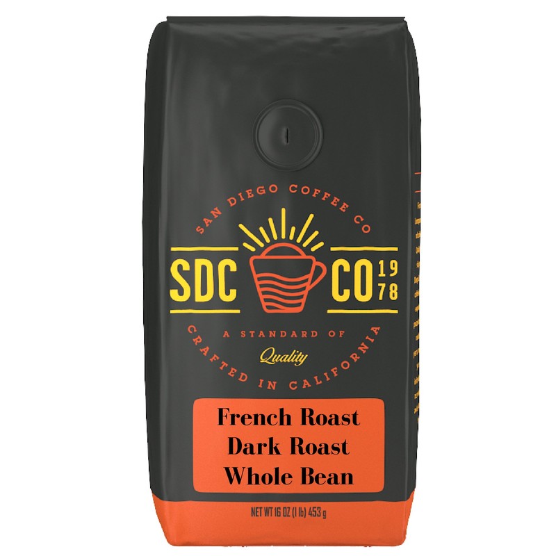 San Diego Coffee French Roast, Dark Roast, Whole Bean, 16-Ounce Bag