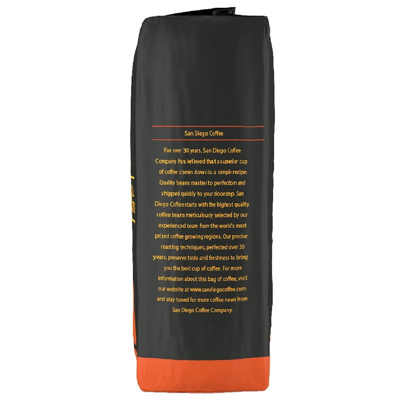 Enjoy a superior cup of coffee with San Diego Coffee Company French Roast, a rich, darkly roasted coffee that creates a full-bodied, lively finish. Roasted in small batches for the finest coffee, San Diego Coffee Company packages beans at the peak of their cycle to preserve their natural flavors and fresh- roasted quality. For freshness, store coffee in an airtight container away from light, heat, and moisture. San Diego Coffee Company starts with the highest quality coffee beans from the world's most prized coffee growing regions, meticulously selected by an experienced team. Precise roasting techniques have been perfected over 30 years, helping preserve taste and freshness to bring the best coffee to your doorstep.