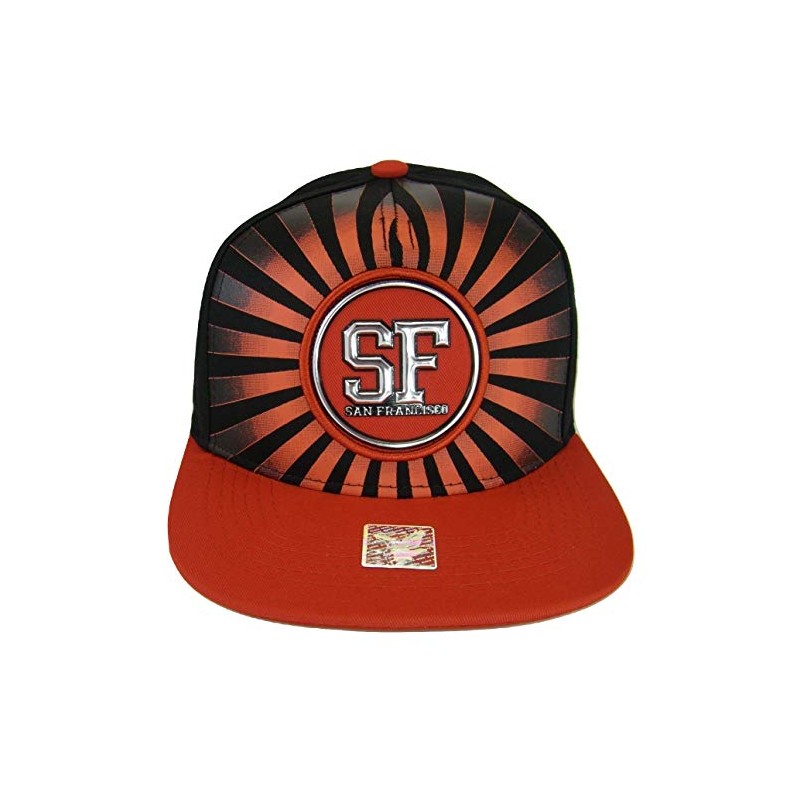San Francisco Men's Striped Cotton Patch Style Adjustable Snapback Baseball Cap (Black/Red)
