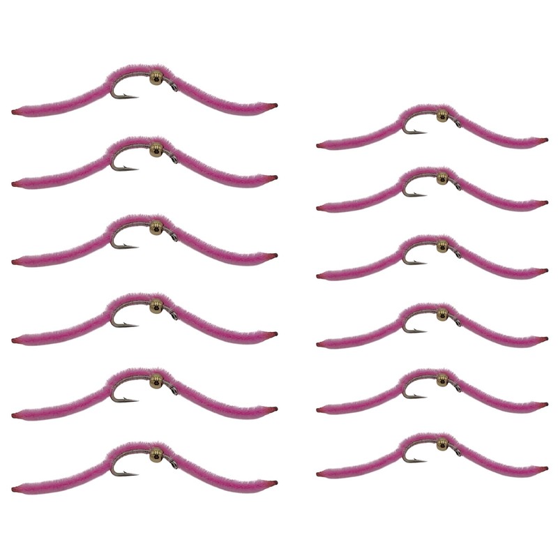 Feeder Creek Fly Fishing Flies | Bead Head San Juan Worm Pink | 12pc in Sizes 12 and 14 | Great Trout and Bass Flies | Fly Fishing Assortment