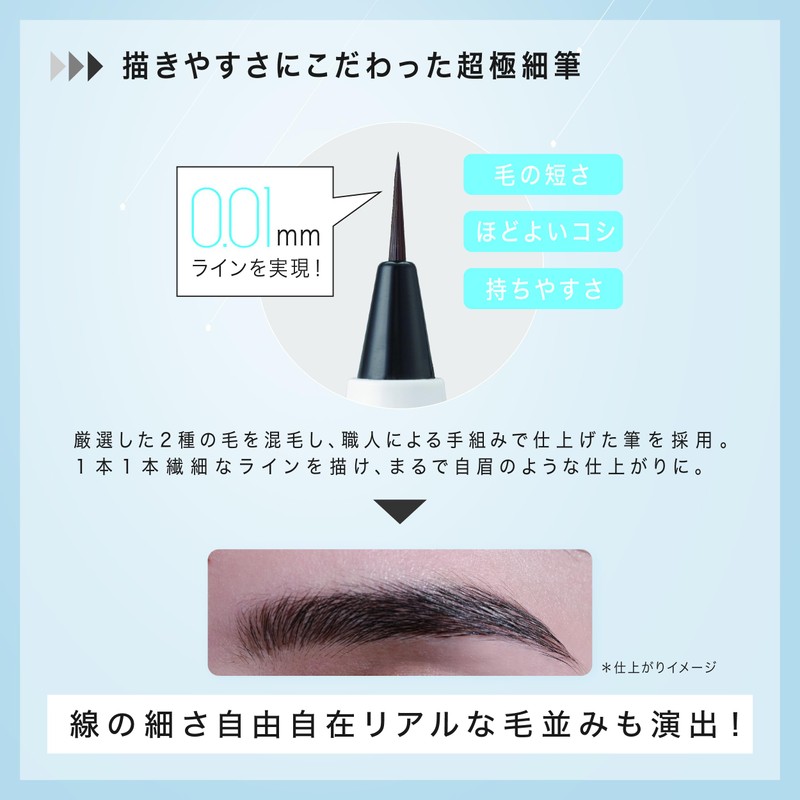 - Ultra fine liquid eyebrow draws meteor grade thin 0.004 inch (0.01 mm) lines. Highly Lasting Dye Formula Will Not Fall Off All Day