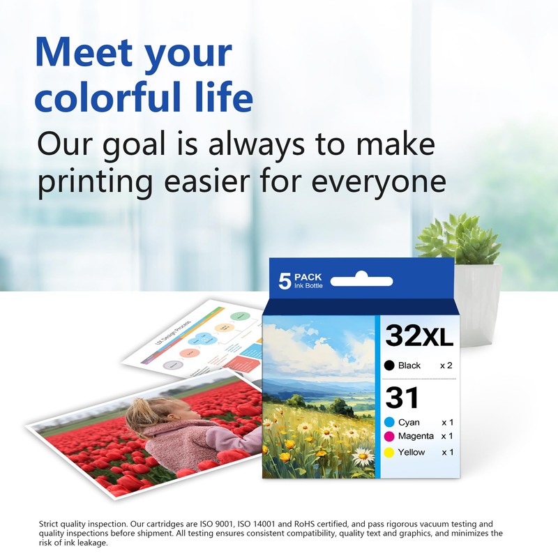 - Product Contents: 5 Pack of 31 32XL refill ink bottles (Black 32xl ink*2, Cyan 31 ink*1, Magenta 31 ink*1, Yellow 31 ink*1).