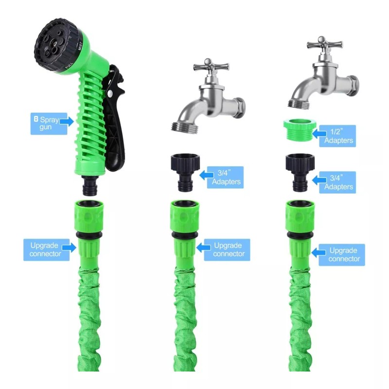 Manguera de jardín flexible: 30 m adecuada para la mayoría de grifos, conectores de manguera de jardín perfectos. La manguera de jardín flexible, manguera de jardín flexible, accesorios para exteriores y cocinas de interior.