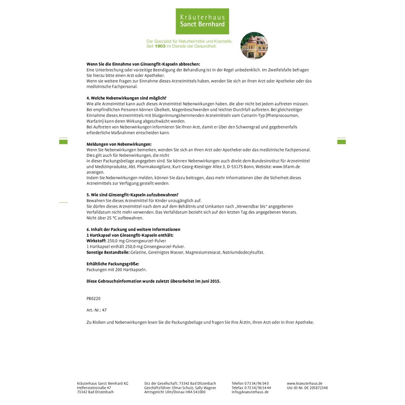 | Manufacturer: | Kräuterhaus Sanct Bernhard KG |