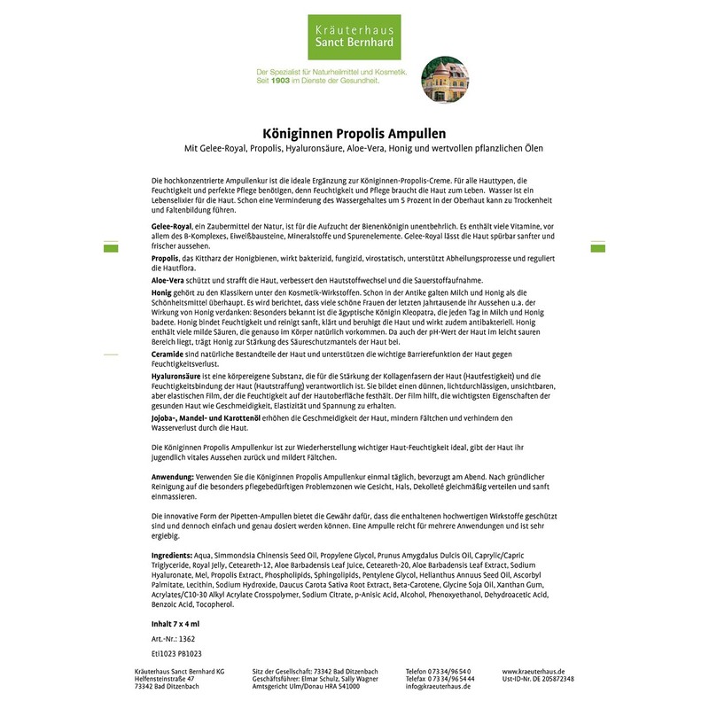 Sanct Bernhard Queen Propolis Set of 2 Propolis Cream and Propolis Ampoules