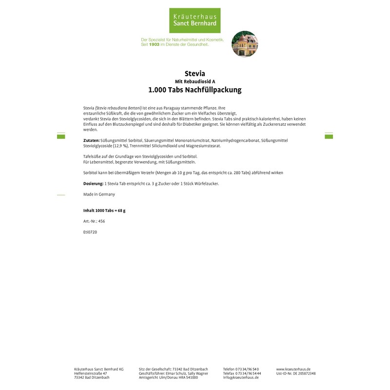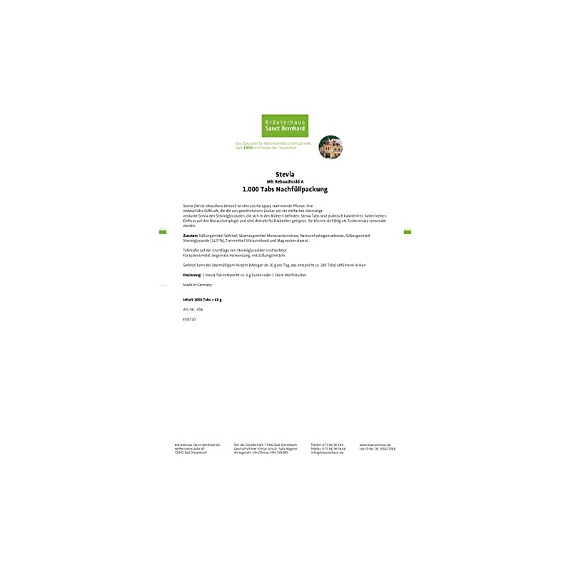 Sanct Bernhard Stevia-Tabs - Nachfüllpackung mit 1.000 Tabs