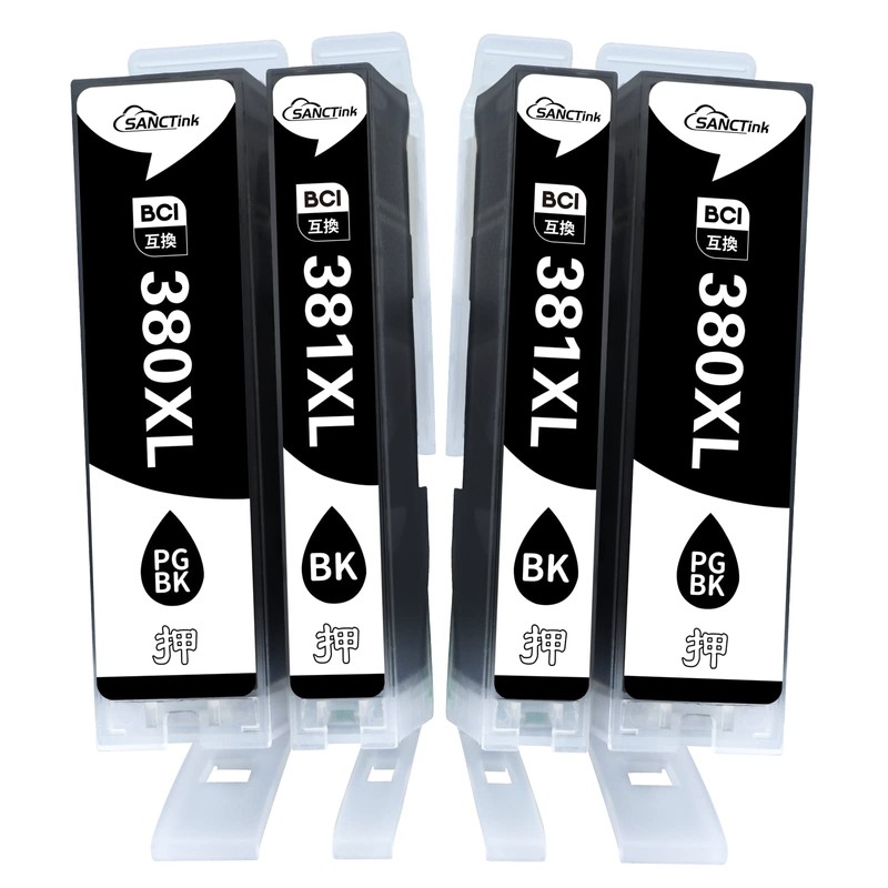 [SANCTink] Canon 381 380 XL BK PGBK Compatible Ink for Canon BCI-381XL BCI-380XL Black 4-Pack Large Capacity Compatible Models: PIXUS TS6330 TR8630 TR9530 TS7430 TR703 TS8130 8230 8330 8430 8430 TS623