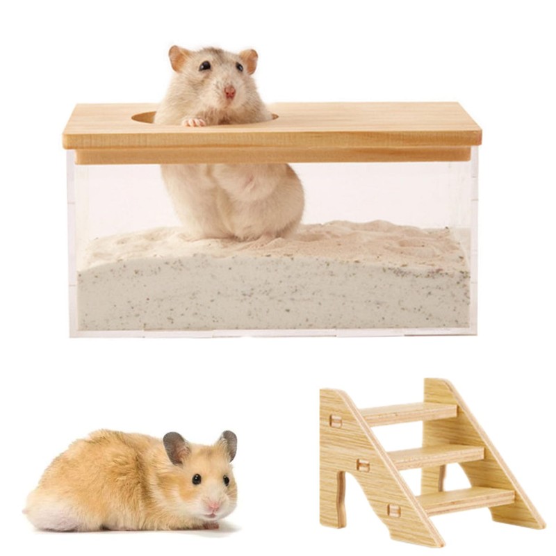- Easy to clean - The hamster sand bath can be divided into upper and lower parts, the lids can be easily removed. Can easily clean hamster cages and sand bath.
