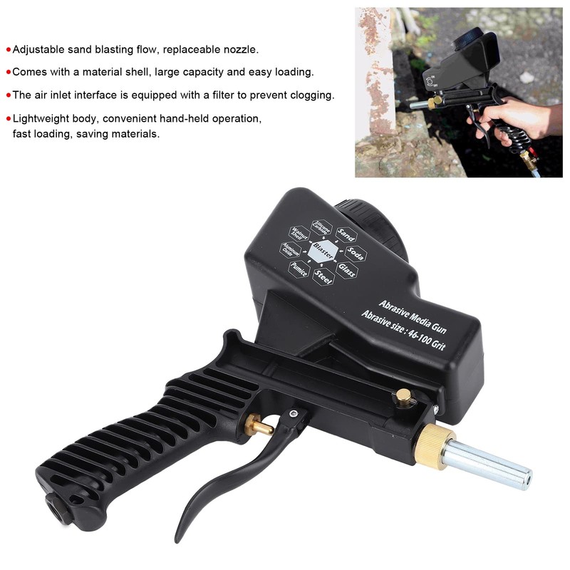 - APPLICATION: The hand sandblasting gun is suitable for various sandblasting applications. The Car Sand Blaster has been specially developed for the machining of light and small dead metal corners and is therefore ideal for tasks such as spray polishing, burr removal and rust removal for intricate details.