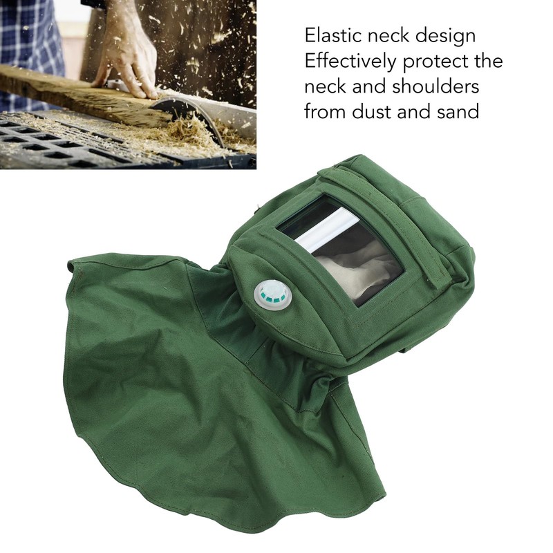 Sand Blasting Hood Heavy Duty Hood Canvas Shawl with Clear Glass Vent Elastic Neck Protector Design for Polishing