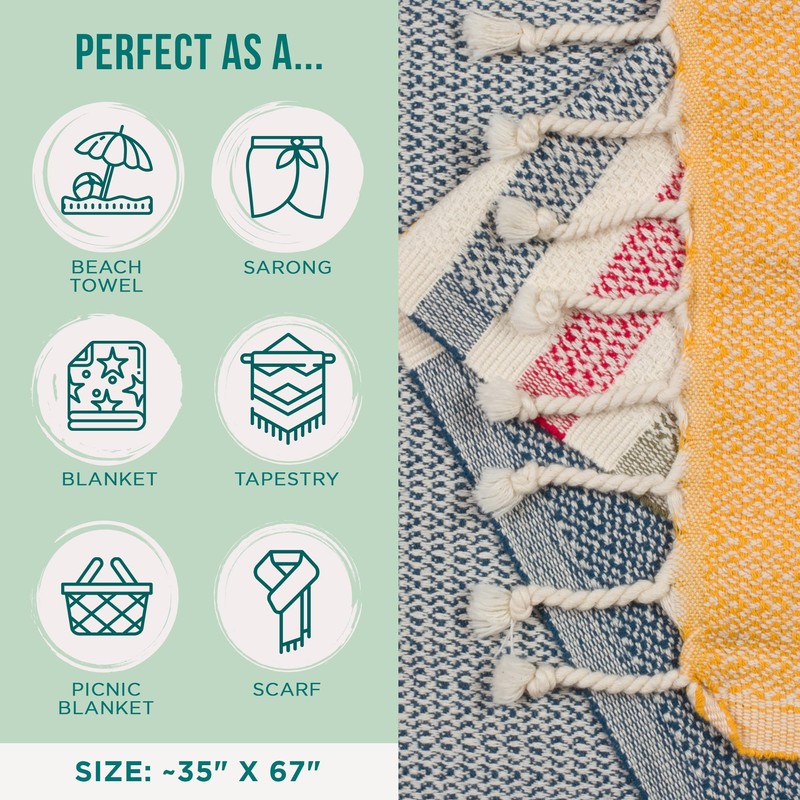 - Designed for the home or beach, this Turkish towel is perfect for all different activities.