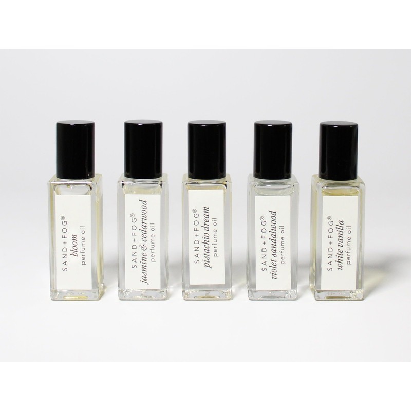 Sand + Fog Sand + Fog Perfume Oil California Coast Discovery Set, 5 Fragrances, 0.17 Fl Oz Each Bloom, Jasmine & Cedarwood, Pistachio Dreams, Violet Sandalwood, White Vanilla