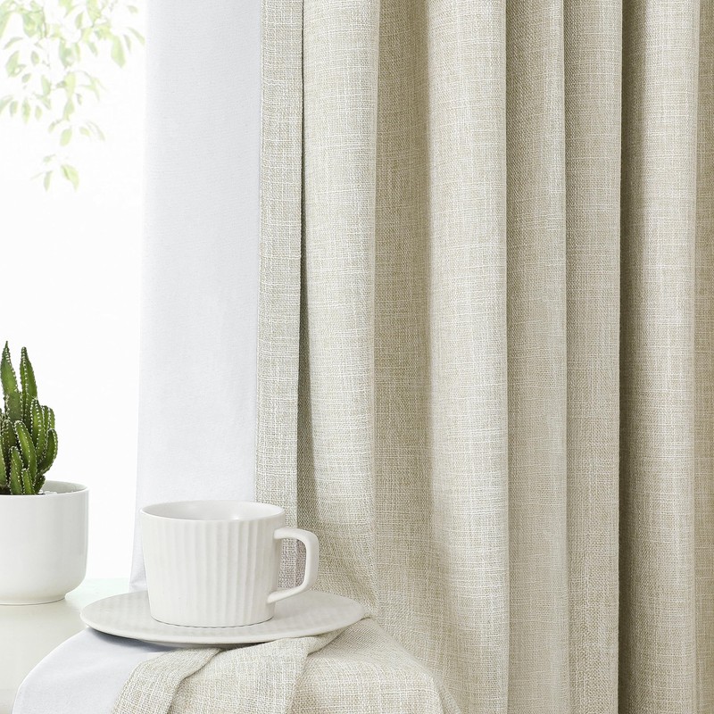 - Full Blackout Curtain: Sand Linen semi sheer is sewn with gray blackout coated lining make the drapes thick enough to blackout sunlight and UV ray. This can provide absolute privacy, heat insulation and noise reduction.