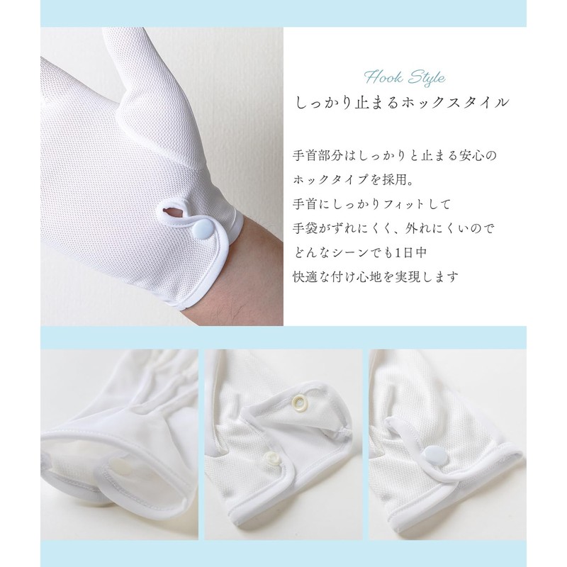 SANDAI Summer Sweat-Absorbent, Quick-Drying, Antibacterial, Deodorizing, Dressing Gloves, 1 Pair, 3 Pairs, Formal Gloves, With Hooks, White Hands, 3 pairs, S