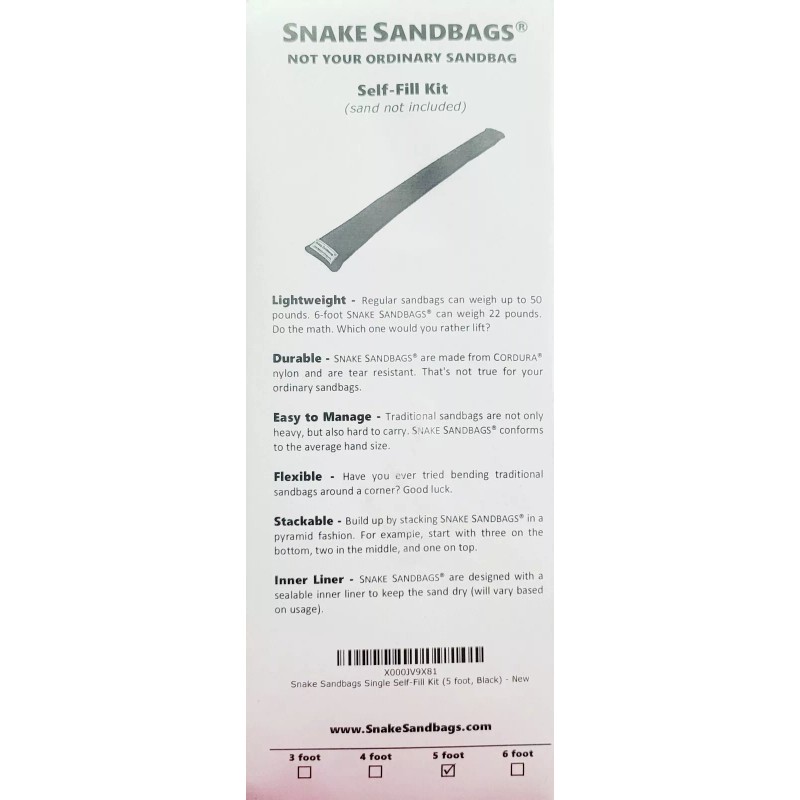 Sandbaggy 5 ft long Water Activated Sandless Sandbags For Flooding (Black) New